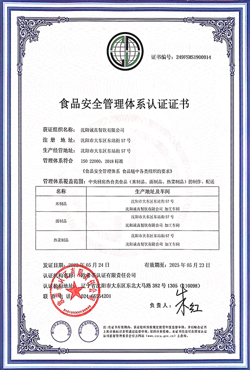 食品安全管理體系認證證書